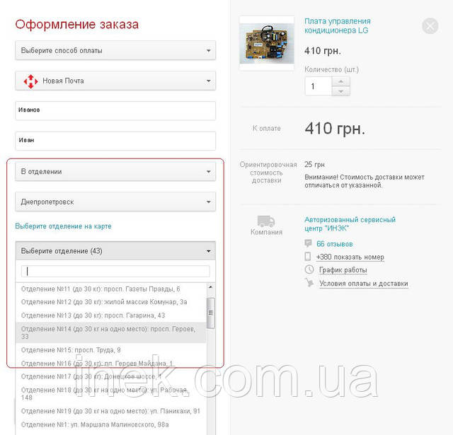 3.4 Нова Пошта - у разі коли клієнт оформив замовлення на сайті і хоче отримати своє замовлення на відділенні Нової пошти у своєму регіоні (місті).